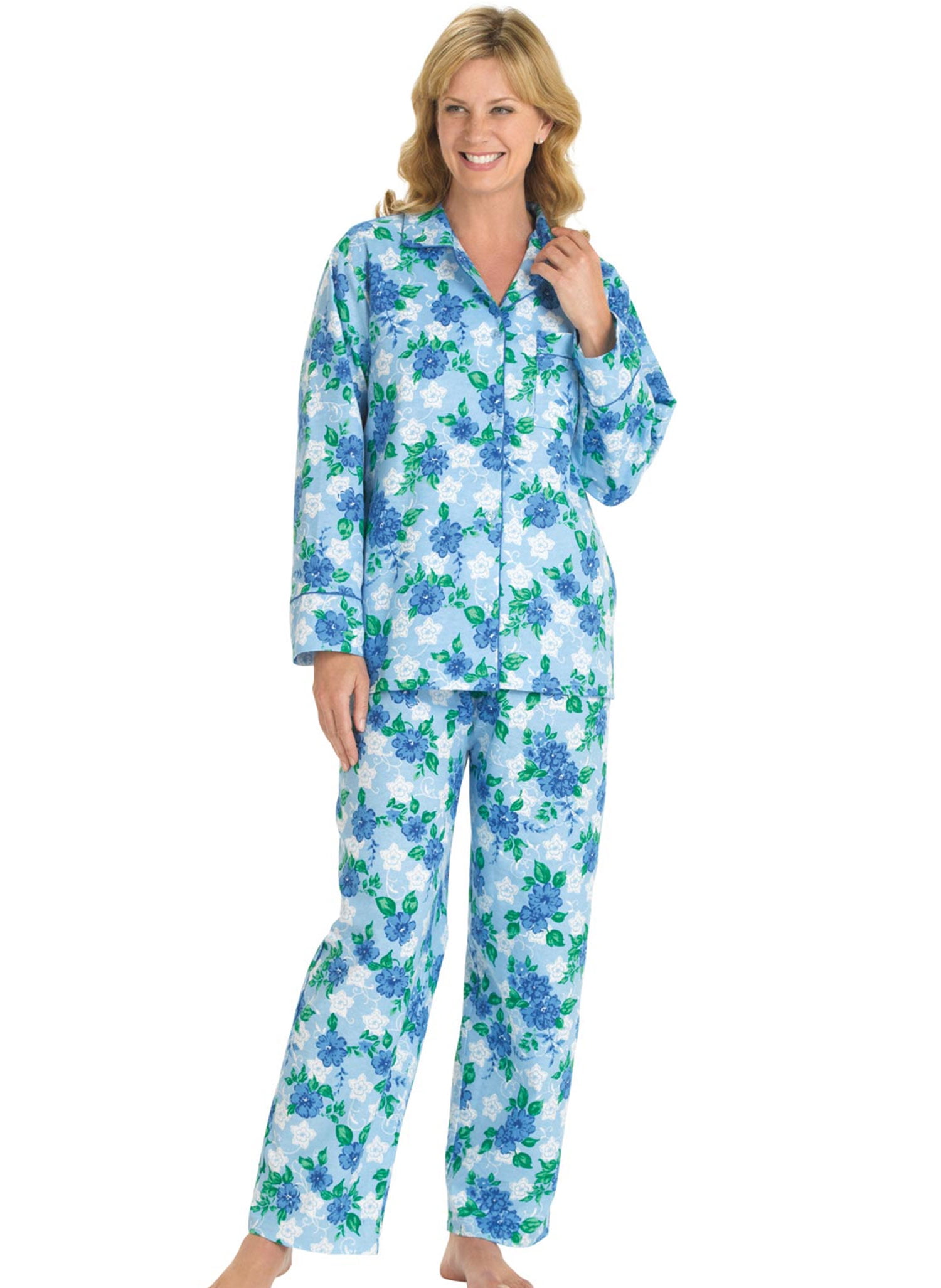 Amerimark Womens Flannel Pajama Two Piece Set Pj Sleepwear With Button Front Top Rose Butterfly Small Petite Walmart Com
